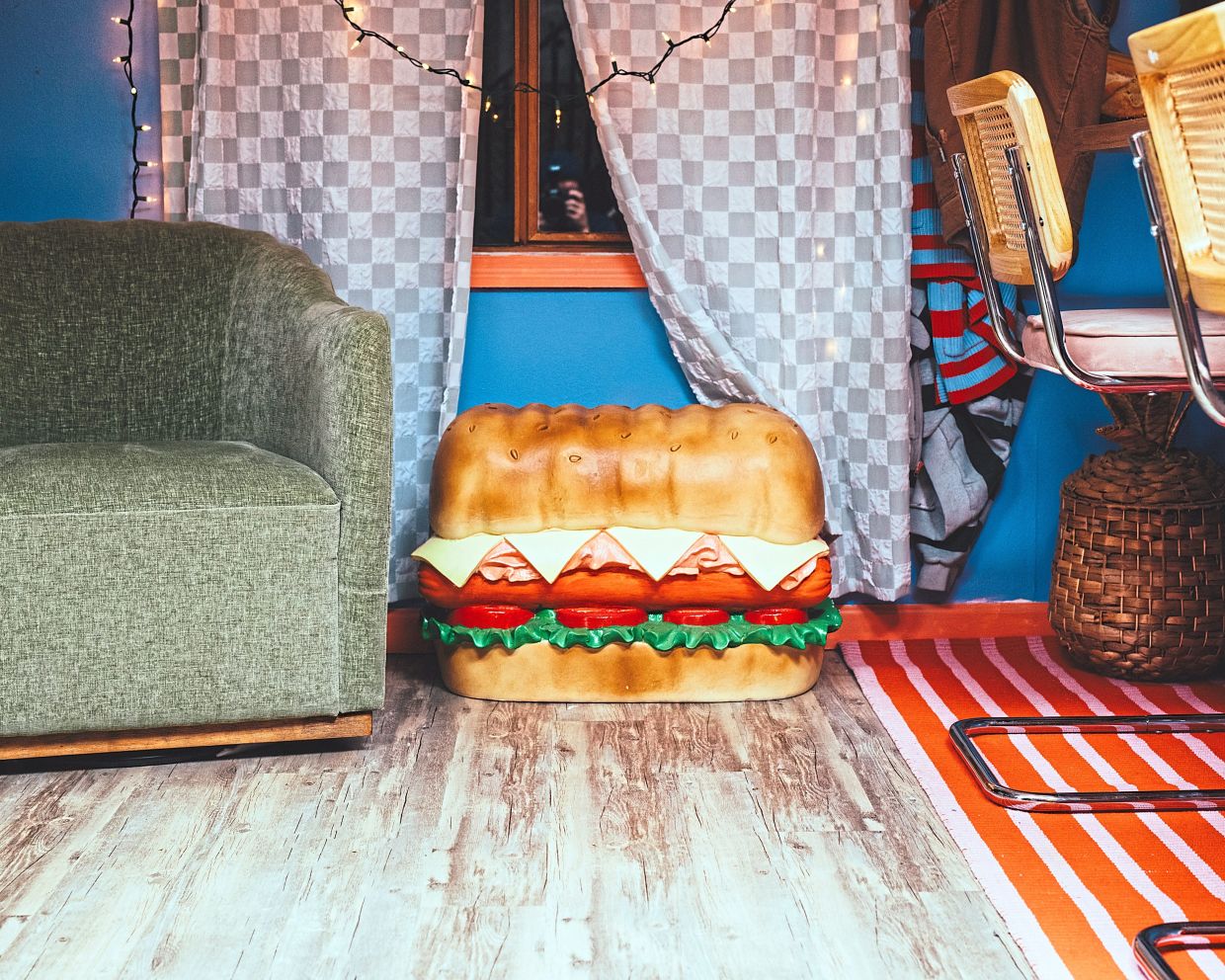 "I started decorating with weird and food-shaped things in 2009, so when I saw that this existed, I was like, this is huge,” she said. The burger was out of stock, but she snagged one on eBay a few weeks later.She eventually furnished her three-bedroom, one-bathroom home on the South Shore of Long Island, New York, where she had recently moved, with the burger as inspiration.