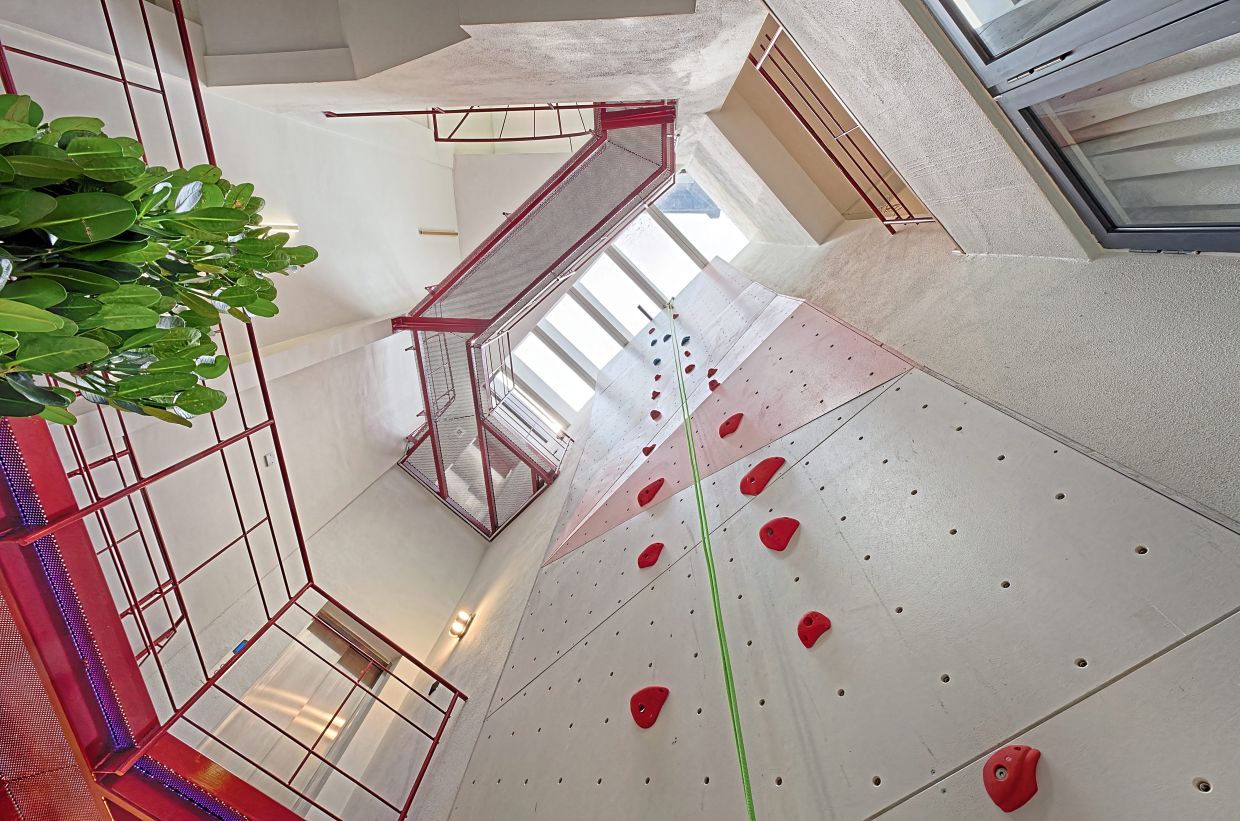 “From its open-plan design to the integration of a rock-climbing wall, sauna and entertainment areas, J House is a dynamic environment that fosters movement, interaction and personal growth,” he adds.