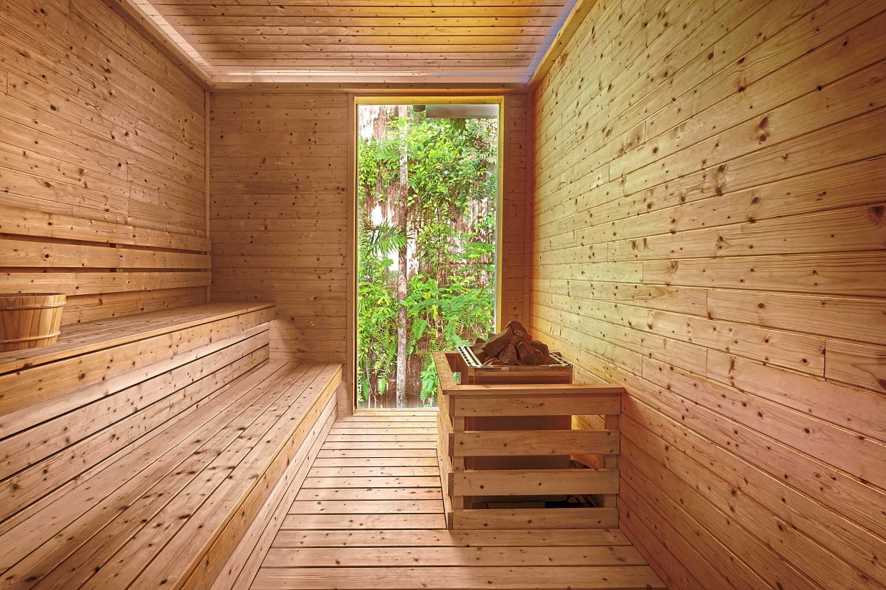 The sauna opens up to a jungle backdrop, offering privacy from passers-by. Photo: Lin Ho Photography