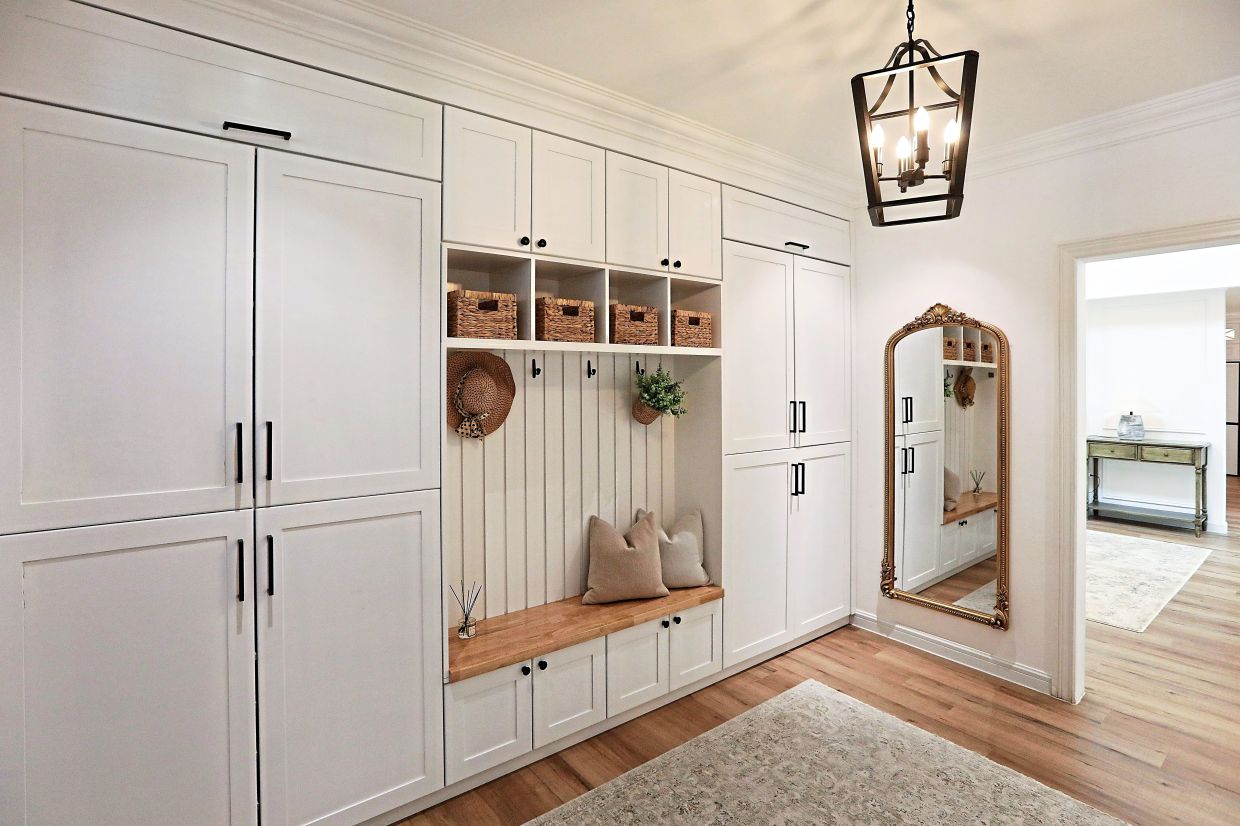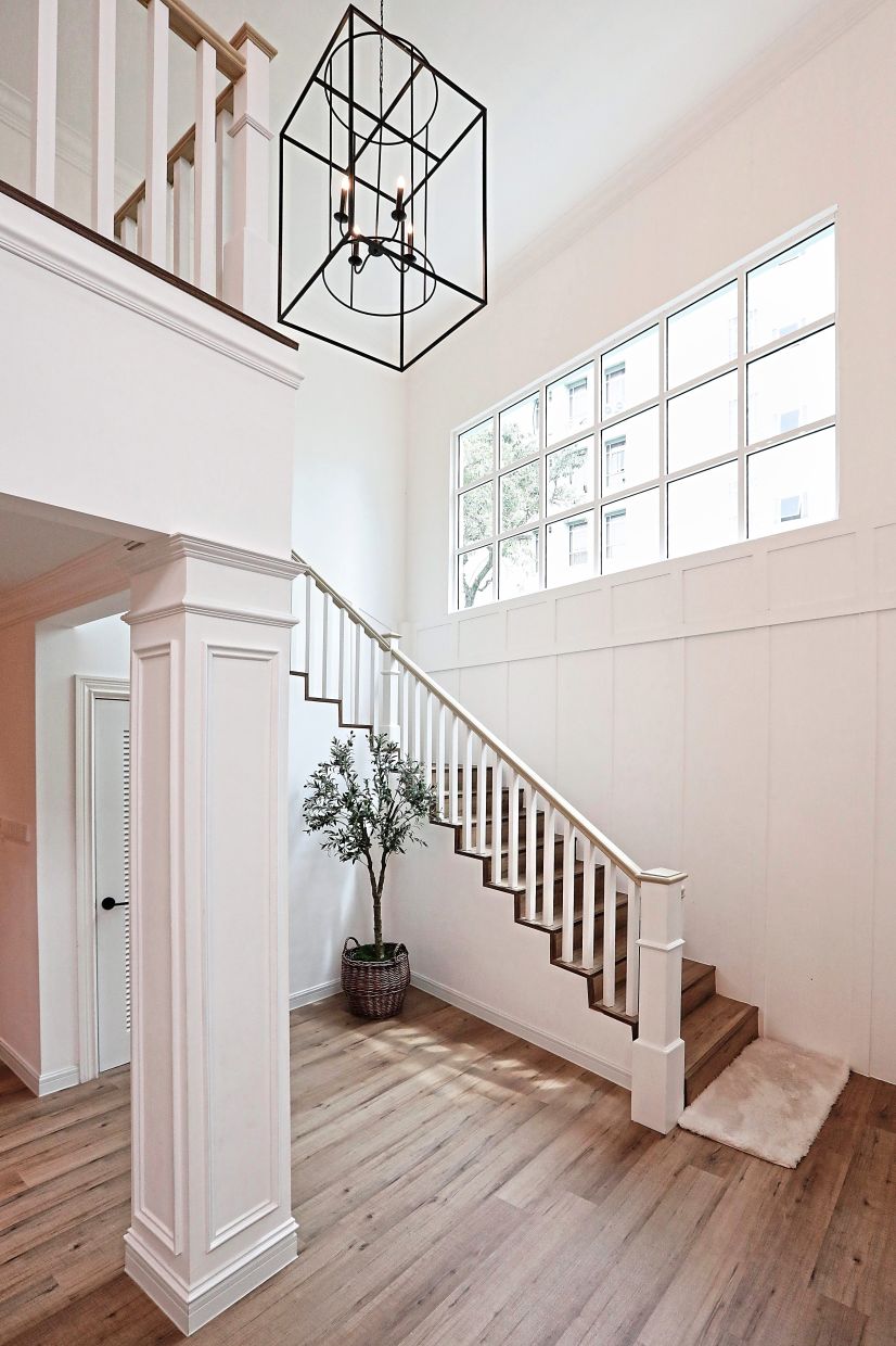 Designed by the homeowner, a successful caterer and mother of five, this house will have you swooning over its chic barn-inspired style, complete with sliding barn doors, painted white shiplap and layers of neutrals.
