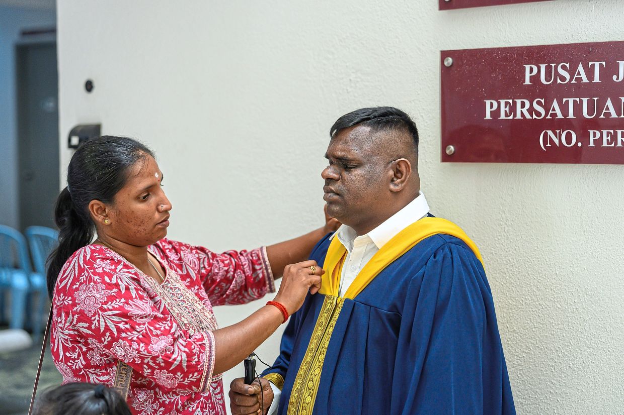Wearing a navy blue graduation robe, Saravanan couldn't hide his joy as he marked a new milestone in his life.