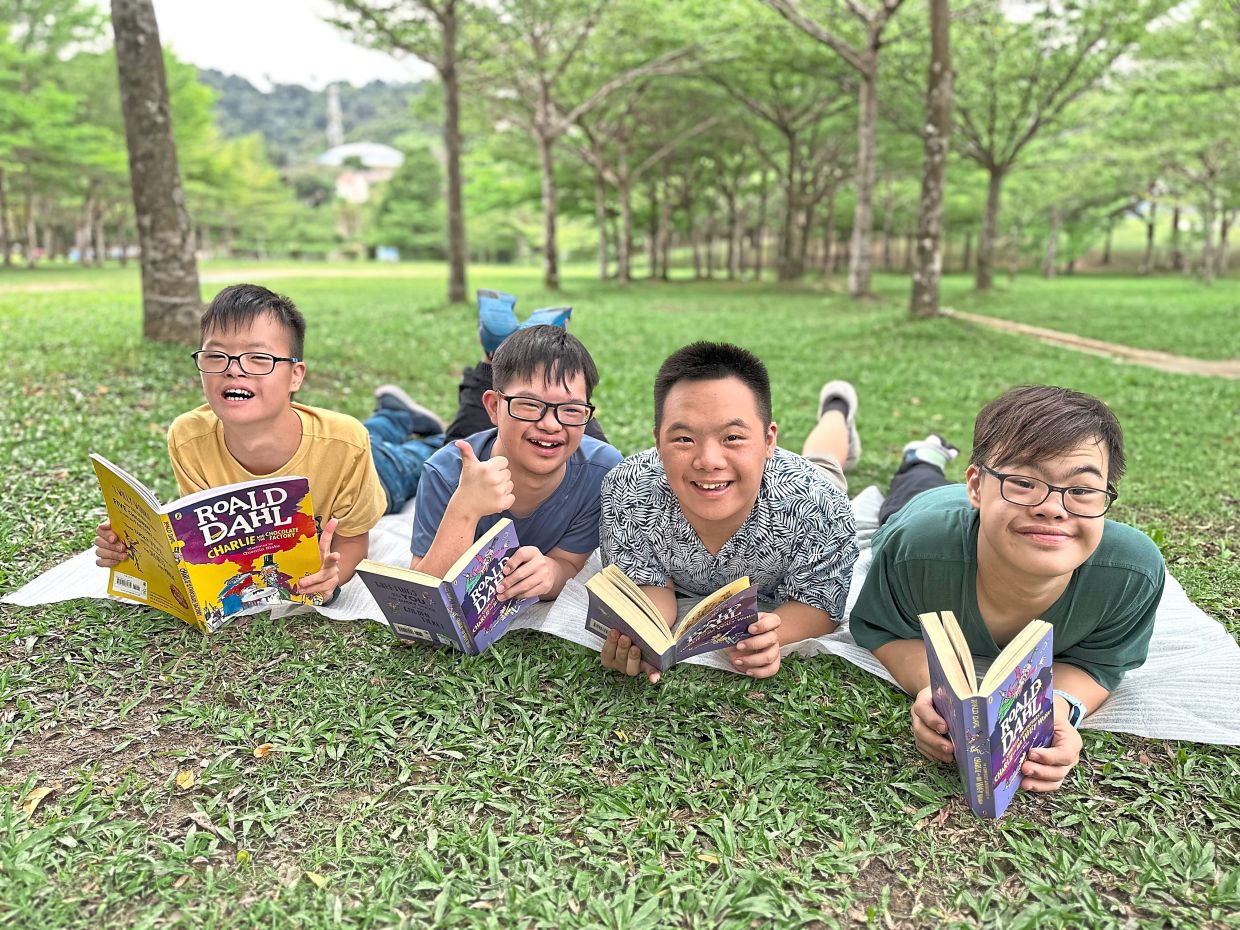 (From left) Yan Wei Xing, Ashton, Yuen Teng Hong and Too Qing Hui are part of Alumni Kelab Down Syndrome Foundation’s book club members. Photo: Florence Lim
