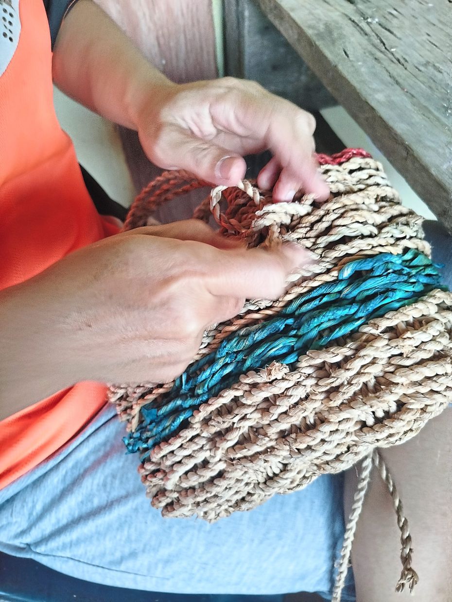 Since 2023, Hanisa has been crafting baskets, handbags, coasters and lampshade covers from banana fibre.