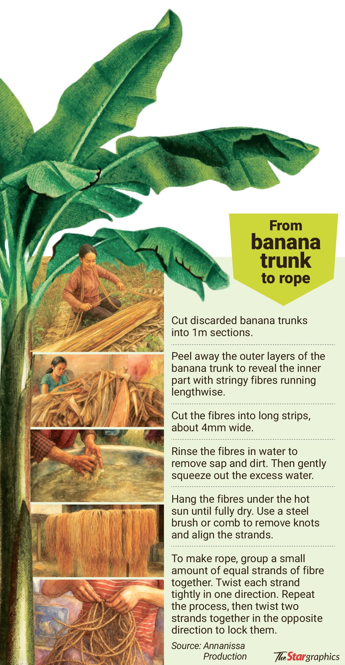 Hanisa admits that turning banana trunks into rope is a labour-intensive process that requires both time and patience.