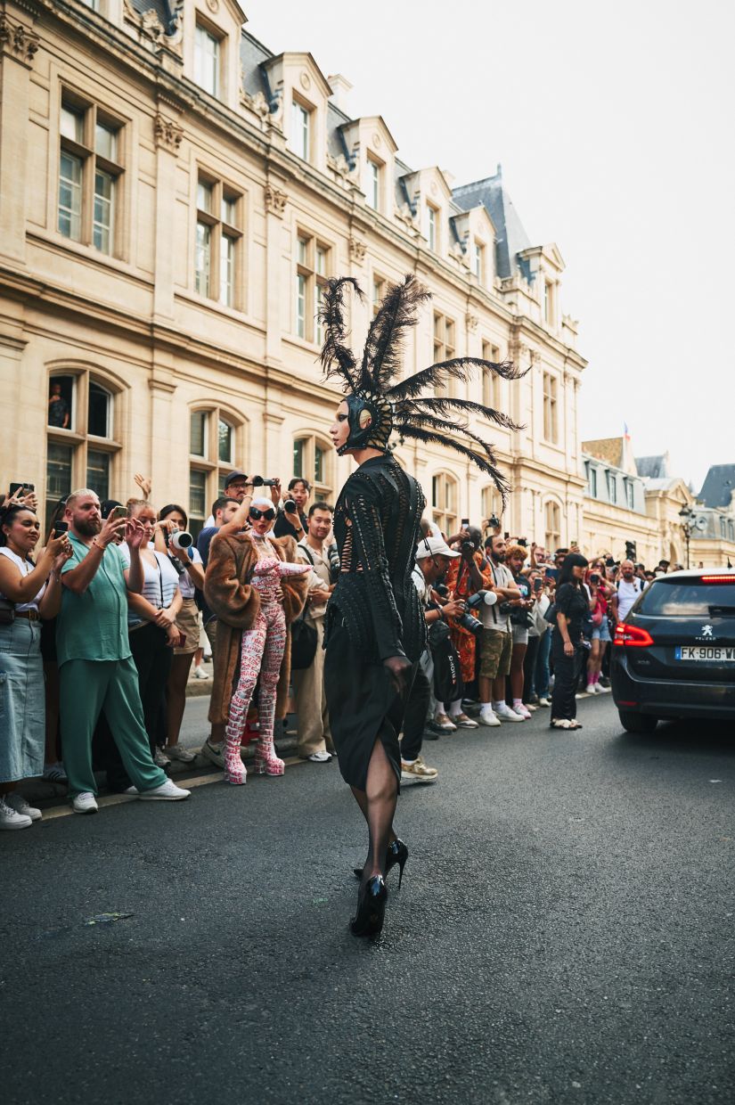 Outside the shows, the style in the crowds was a mix of formal attire and streetwear.