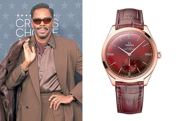 Nominated for the Best Actor award for his role in Sing Sing, Omega’s new friend of the brand wears a De Ville Trésor in 18K Sedna Gold with a burgundy dial and burgundy leather strap.