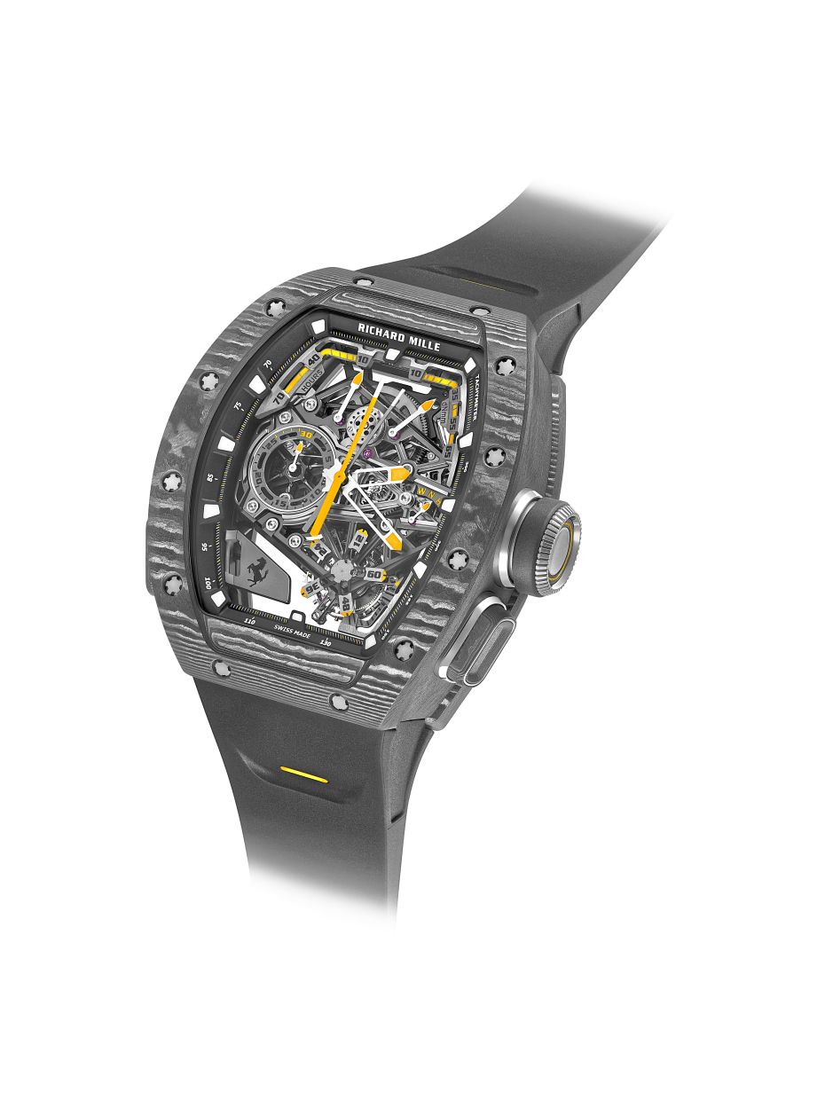 An extraordinary blend of horological and automotive design by Richard Mille and Ferrari, the watch is a showcase of beauty, offering uncompromising performance.