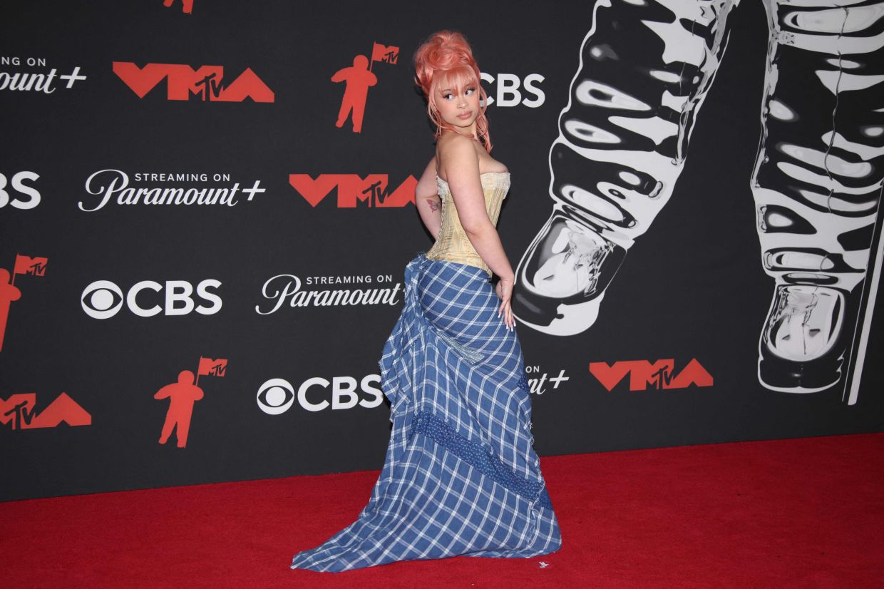 Some of those statements on the red carpet at the 41st VMAs on Sunday (Sept 7) included feathery pastel boas and hats, bedazzled coffee cups and a Labubu dressed like the Moon Person statuette given to VMA winners.