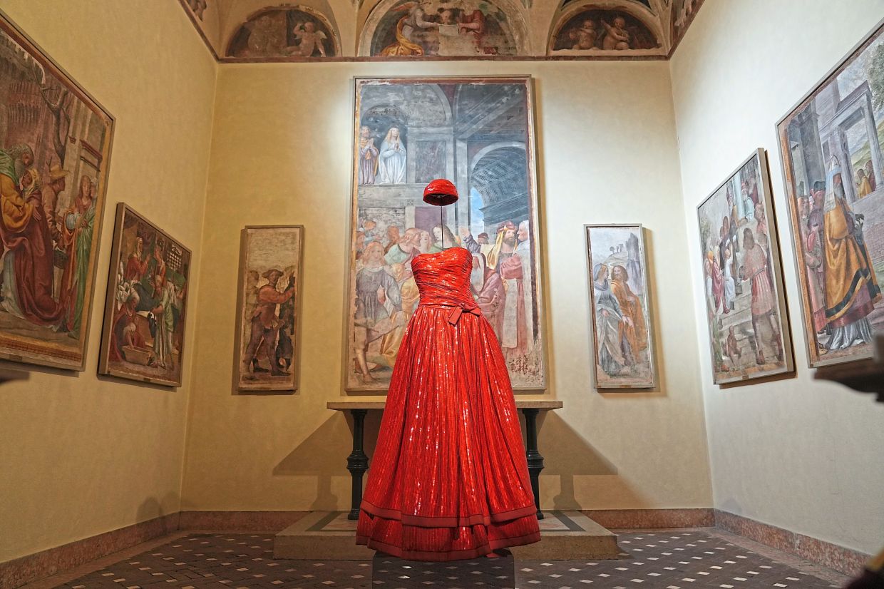 Giorgio Armani's creations lives on, where they are arranged among world-famous paintings by artists including Caravaggio and Raphael. Photo: AP