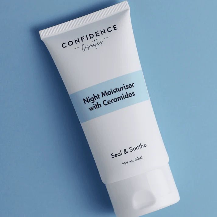 Confidence Cosmetics’ Seal & Soothe Night Moisturiser With Ceramides is meant to calm, nourish and reduce redness, while also strengthening the skin barrier.