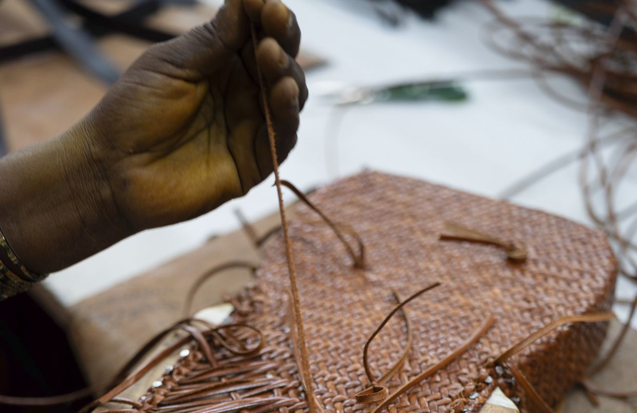 Afterward, the leather strips are waxed and treated with heat “to ensure colour fastness and to nourish the leather,” Wright said.