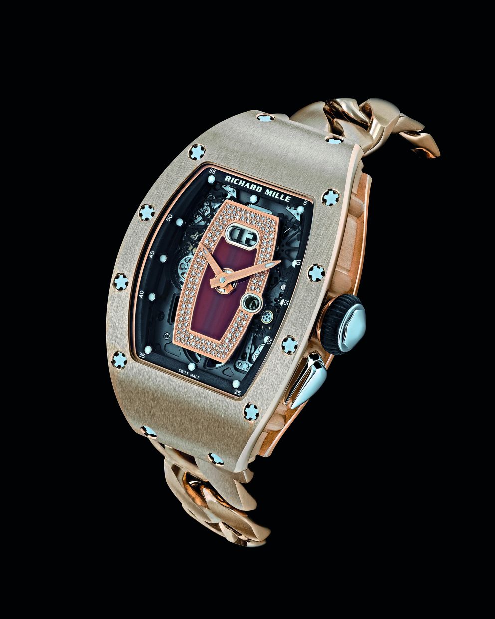 The RM 037 Ladies’, a fully feminine interpretation of the original unisex RM 037, completely embodies the essential combination of beauty and elegance with technical features and attention to detail that Richard Mille is known for.