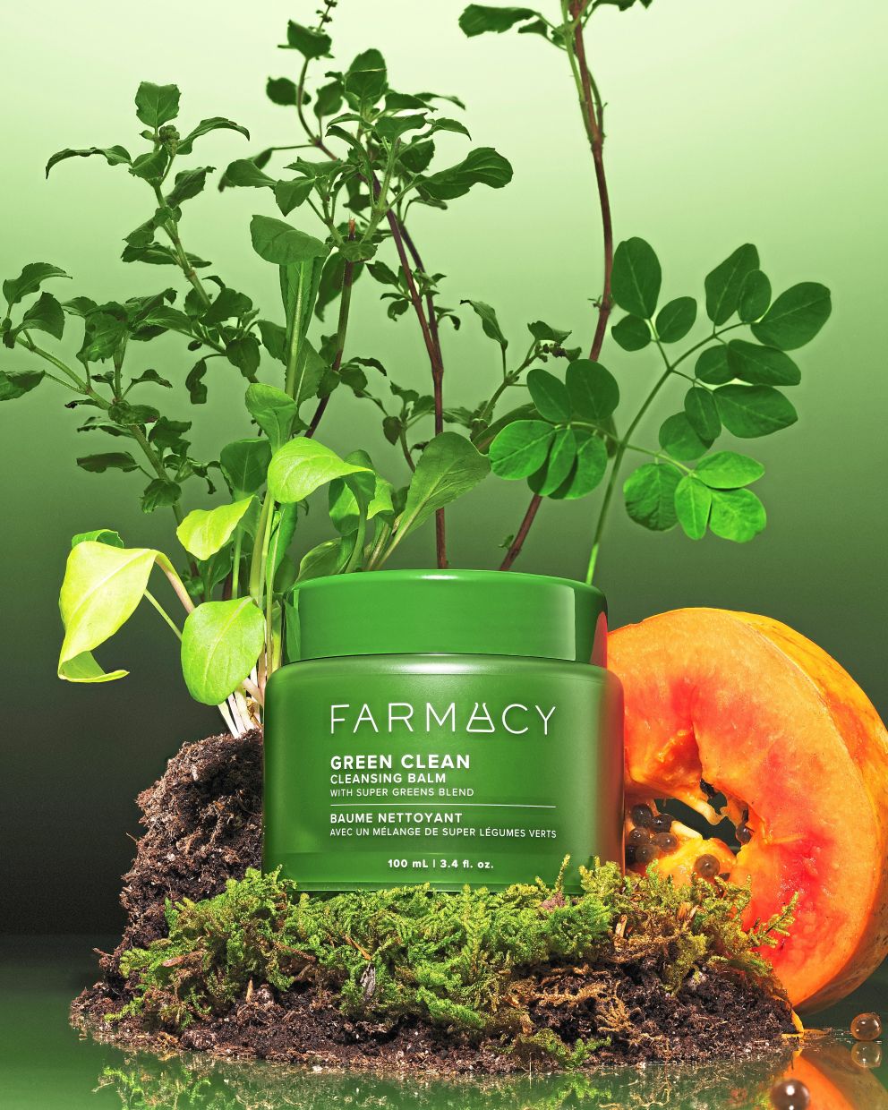 Farmacy’s Green Clean Cleansing Balm features a super greens blend of upcycled moringa, holy basil and arugula which provides natural antioxidants that support healthier-looking skin.