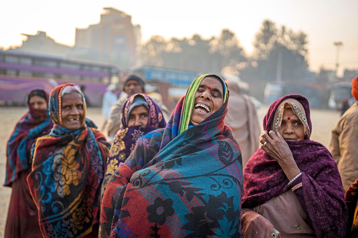 Hawkers greet them with hot tea on the cold wintry morning. Many worshippers hand the cups to their wives, mothers and children through the bus windows.