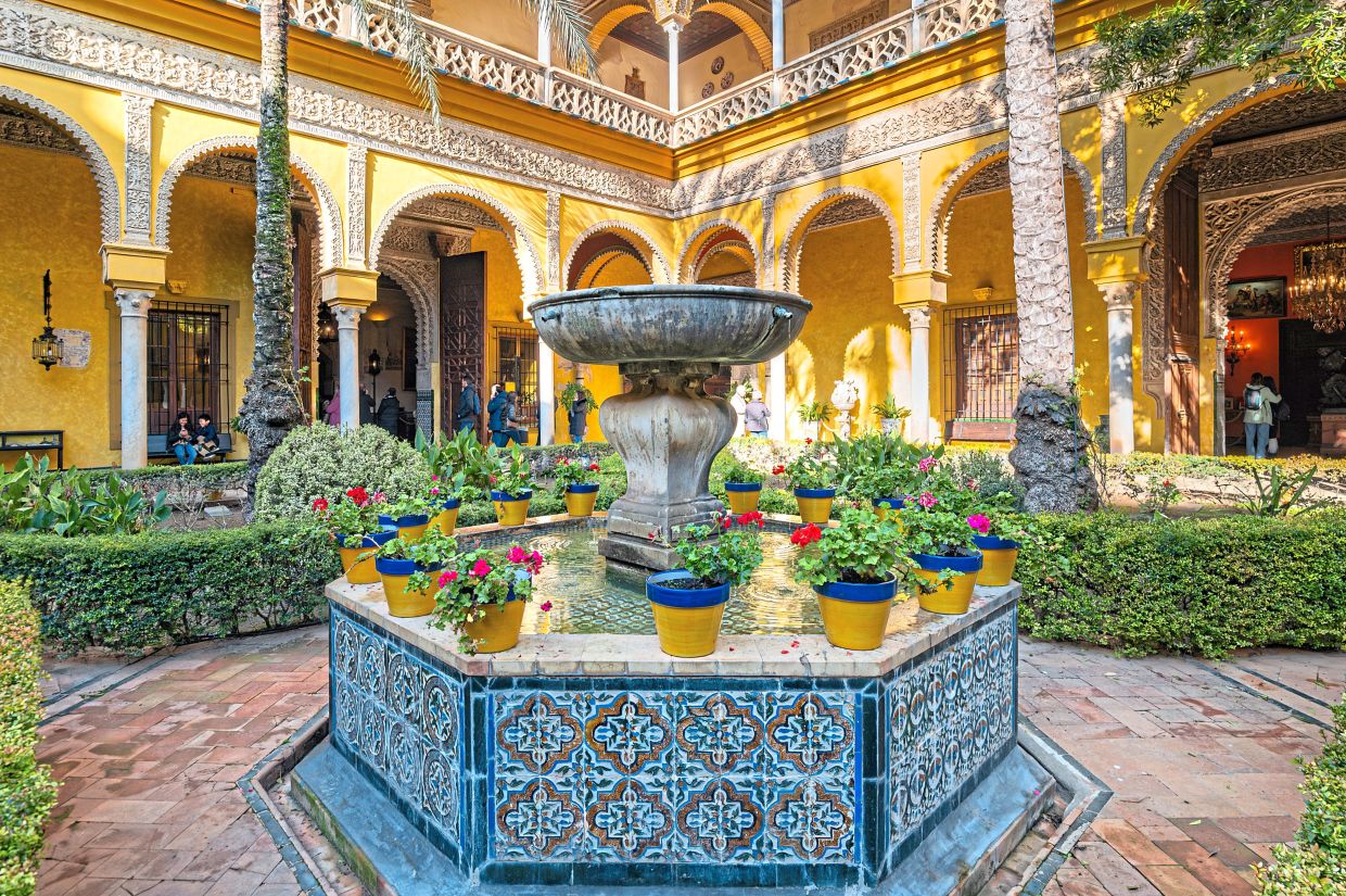 Built between the 15th and 16th centuries in the Renaissance style, it features Gothic and, especially, Moorish influences – most notably the concept that homes should appear fortress-like on the outside and paradisaical within. The palace’s layout includes 11 patios and gardens and nine fountains, including two tiled ones that have been gurgling away for nearly 500 years. Inside are works by 16th-century artists like Sofonisba Anguissola and Jacopo Bassano.
