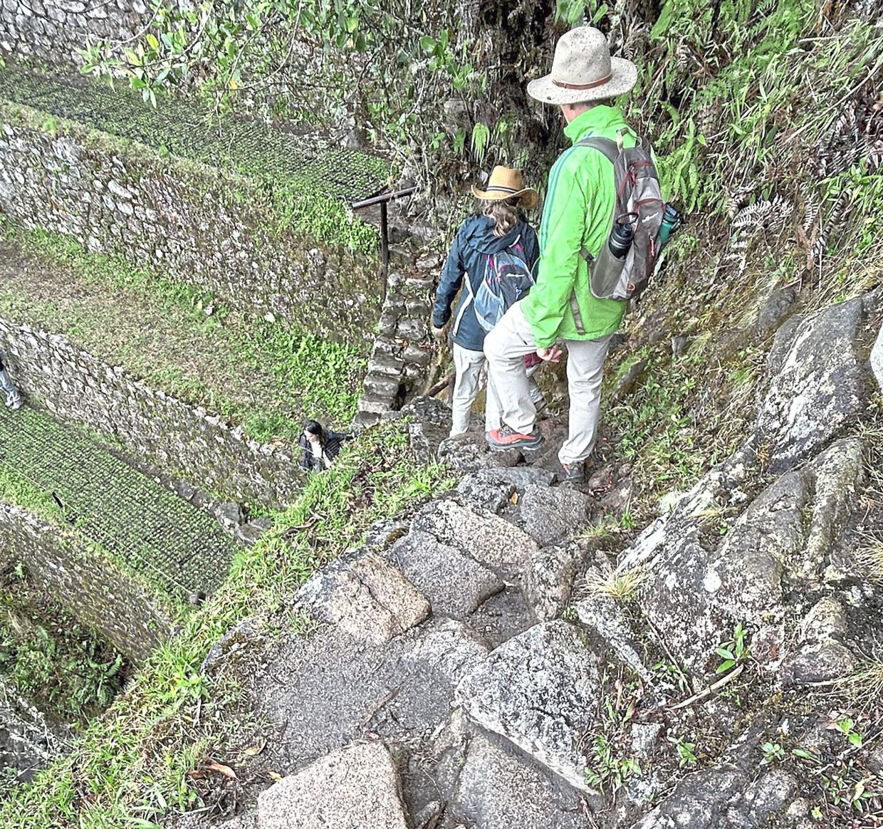 Tourists climbing down the steps of Huayna Picchu in Peru. — COLLEEN THOMAS/TNS