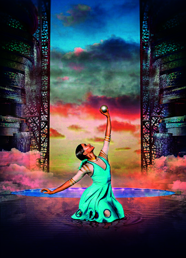 The show unfolds in a state-of-the-art theatre, set in a custom-built aquatic stage which features both dry and water elements, allowing for daring aerial acts, synchronised swimming and high dives into pools below.