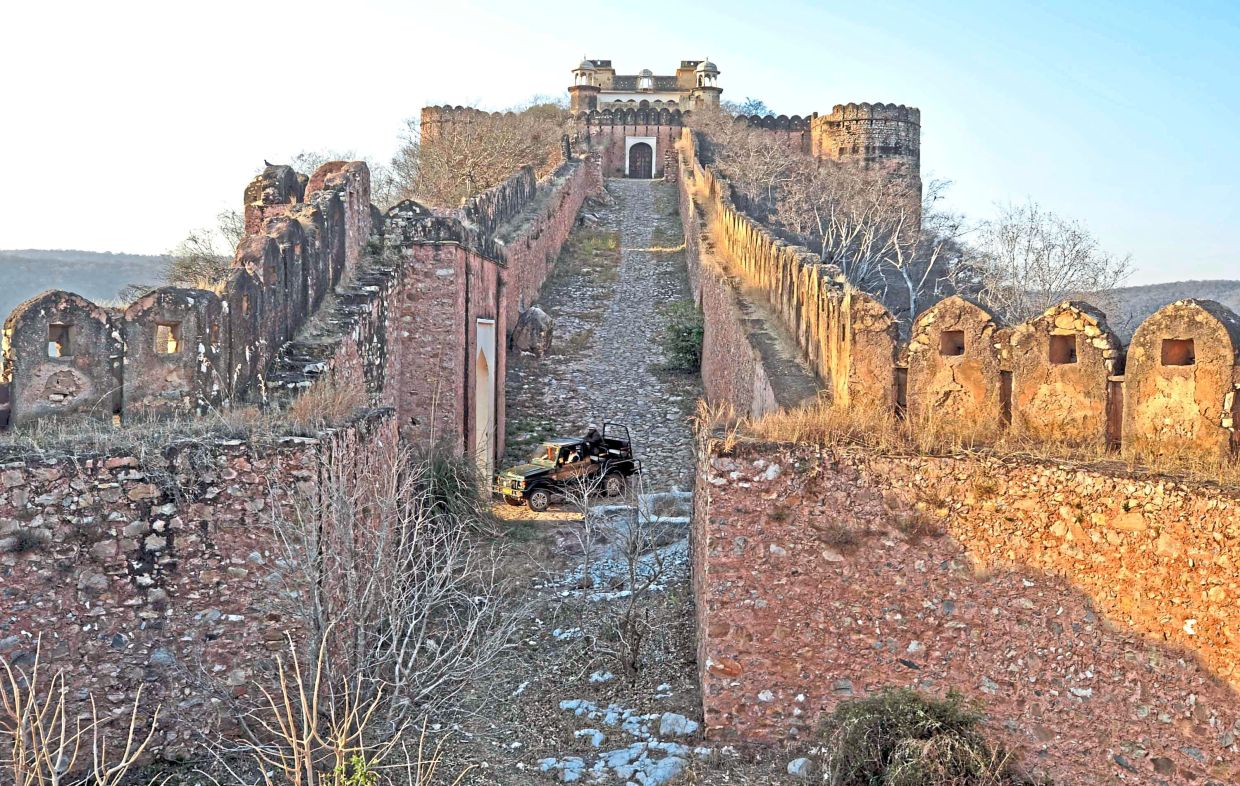 Eventually, it reached a broad almost bowl-shaped valley bristling with palm trees. Topping a hillock up ahead stood ample compensation for not seeing a tiger: Kankwari Fort.
