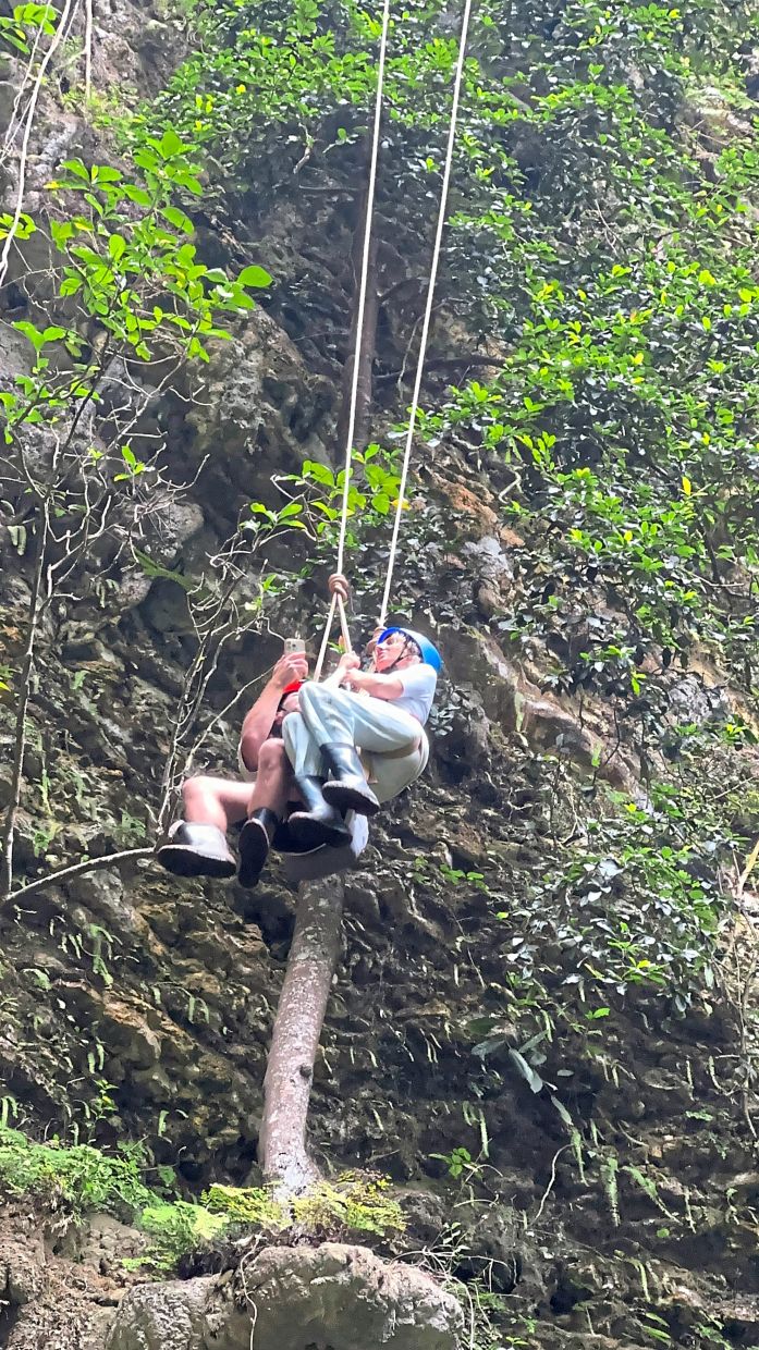 To enter the cave, you don’t hike. You descend – suspended by rope, body tilted back, legs dangling.