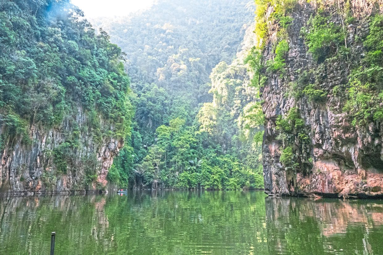 Watch the sun make its slow climb above the limestone wall, casting streaks of gold across the cliffs. Notice how vines sway in a wind you can’t feel. Count the fish – if you’re lucky – gliding just below the surface like whispers.