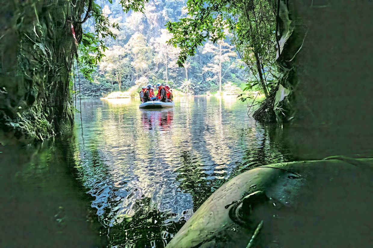Rafts moving gently through the calm waters, like leaves on a breeze. Tasik Cermin isn’t a lake; it’s a quiet dream you can paddle through.