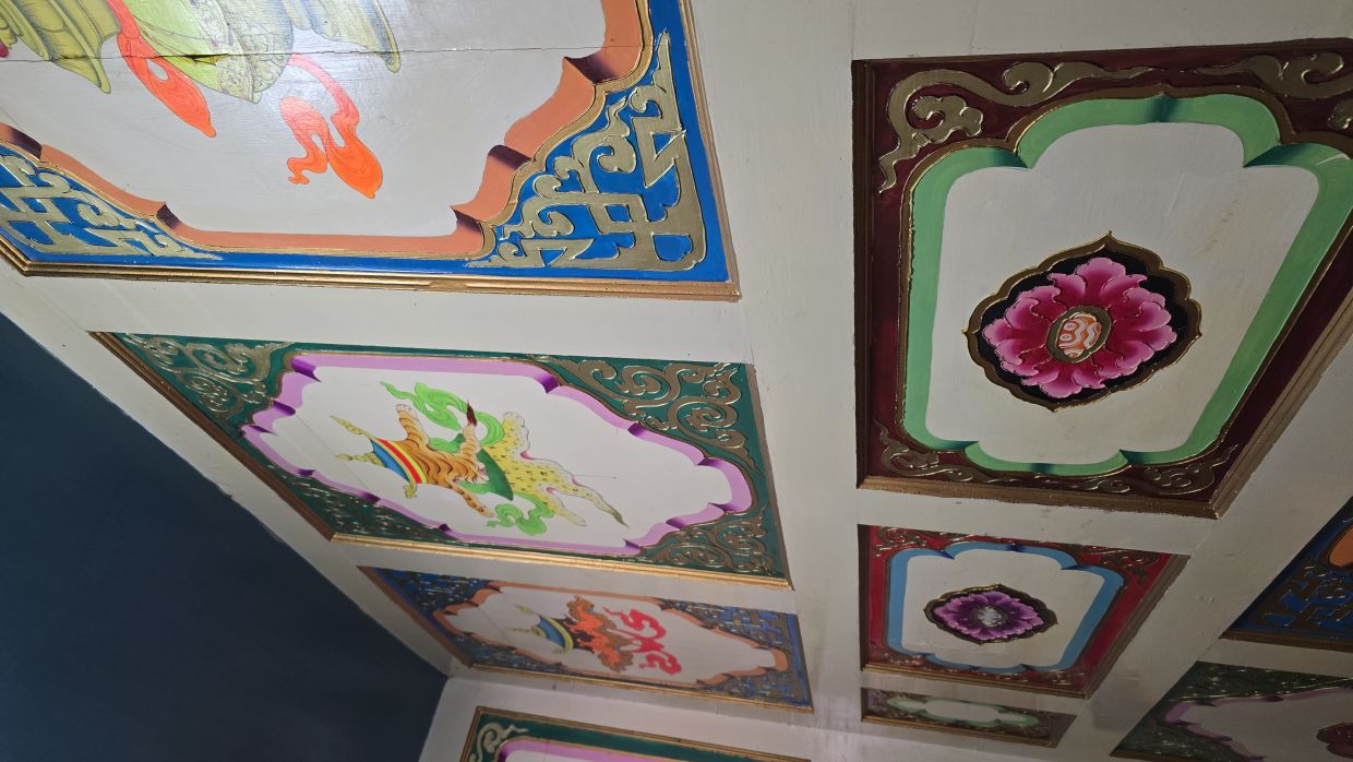 Paintings of deities that were made by the monks cover the walls, as do colourful hand-painted wooden tiles.