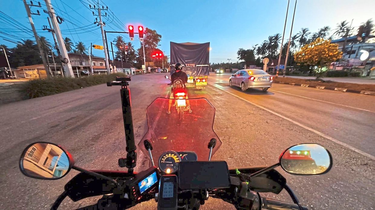 As daylight faded, the Yamaha pressed northwards and by nightfall, it was humming through Thai border towns.
