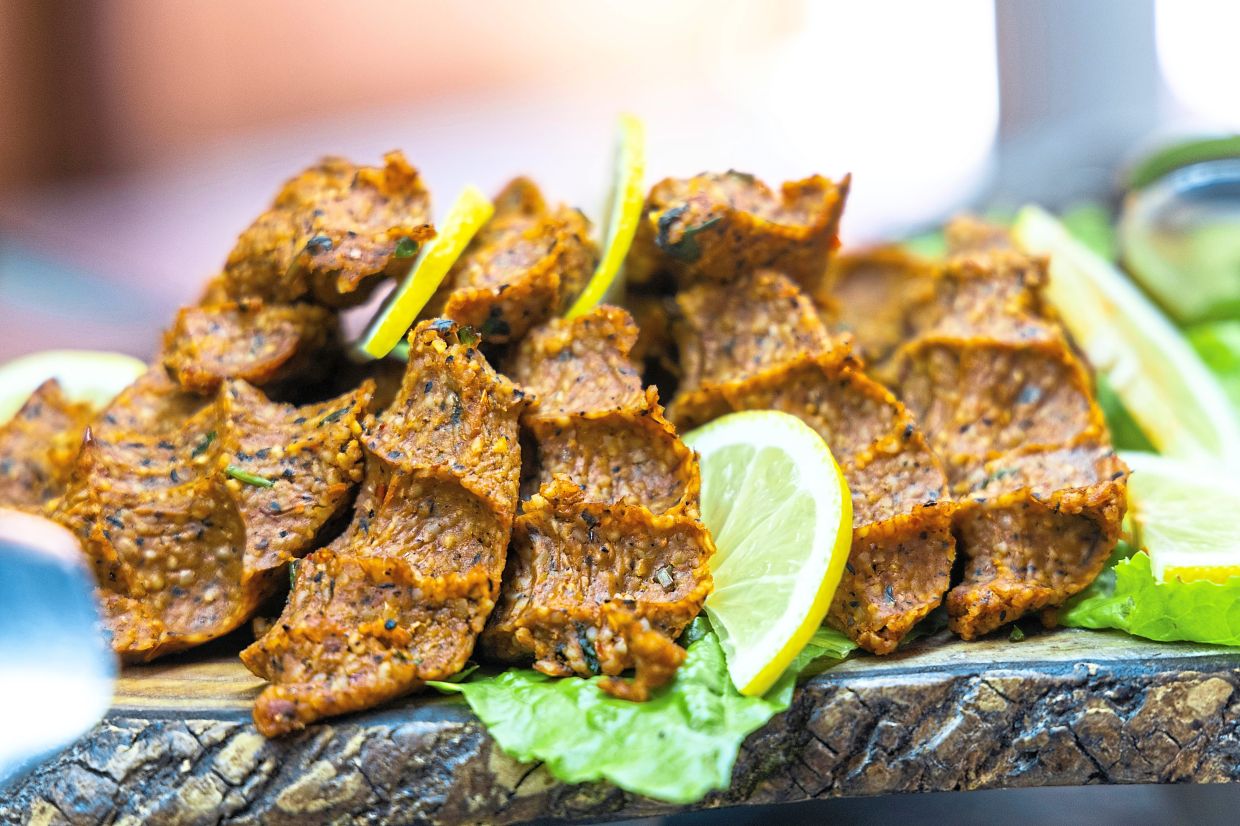 But this Southeastern Anatolia speciality is usually vegan now, despite its name. It also has a curious non-ball shape that’s achieved by rolling it into a log and simply using fingers to create the indentations.