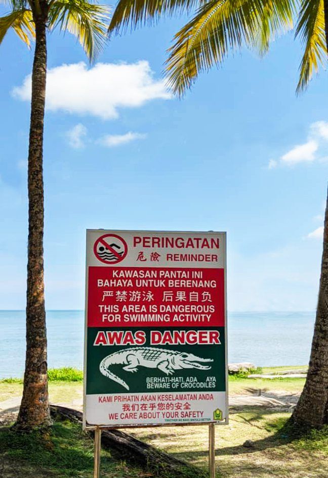 After looking at the impressive Tua Pek Kong Temple in the town centre, we headed north to check out the beachfront parklands. The water even looked tempting enough for a swim until we noticed a crocodile warning sign.