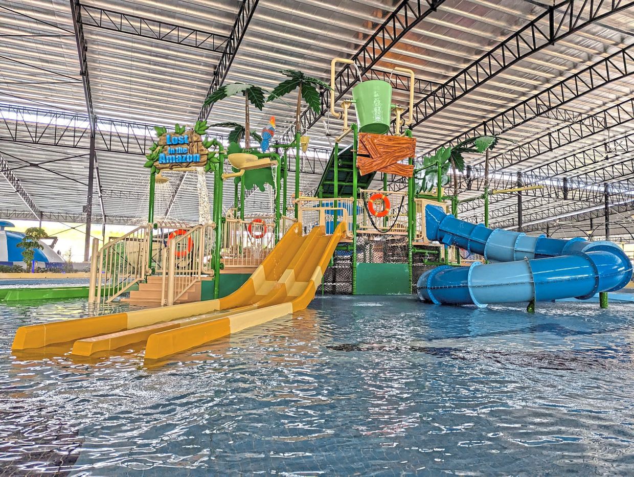 Meanwhile, Lost in Amazon is a water playground that has a slide, a twirly chute and a giant water-pouring bucket.