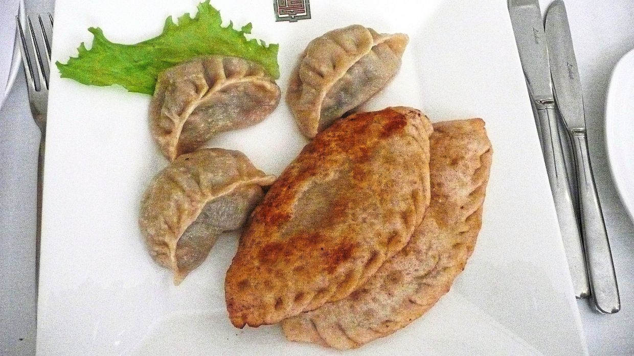 Crescent-shaped, steamed or fried, often filled with minced meat.