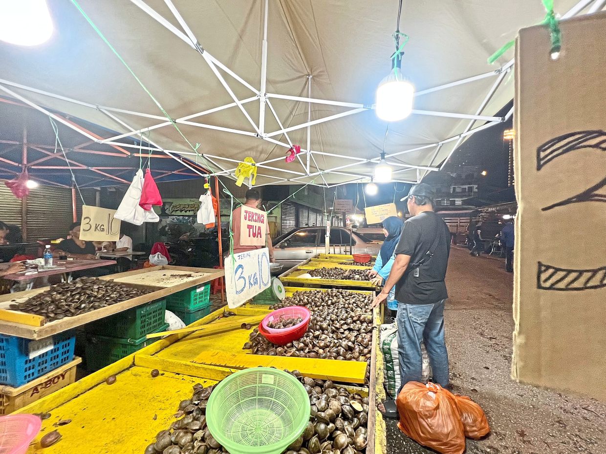 Consumed the same way as petai, there are two varieties sold here: jering muda and jering tua. The latter is the more pungent of the two.
