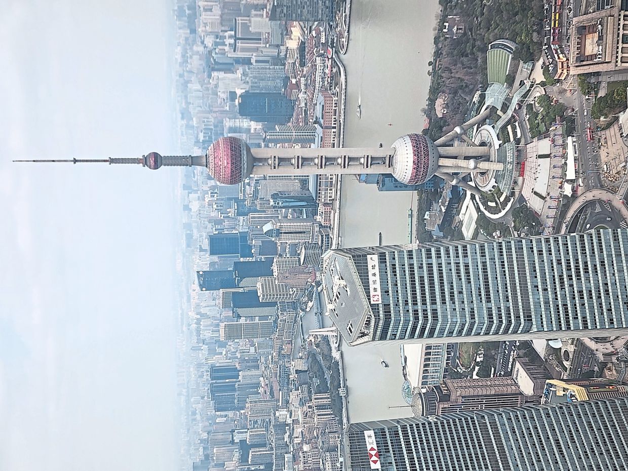 From here you can see Shang-hai Tower (632m), Shanghai World Financial Centre (492m) and The Oriental Pearl Tower (468m).