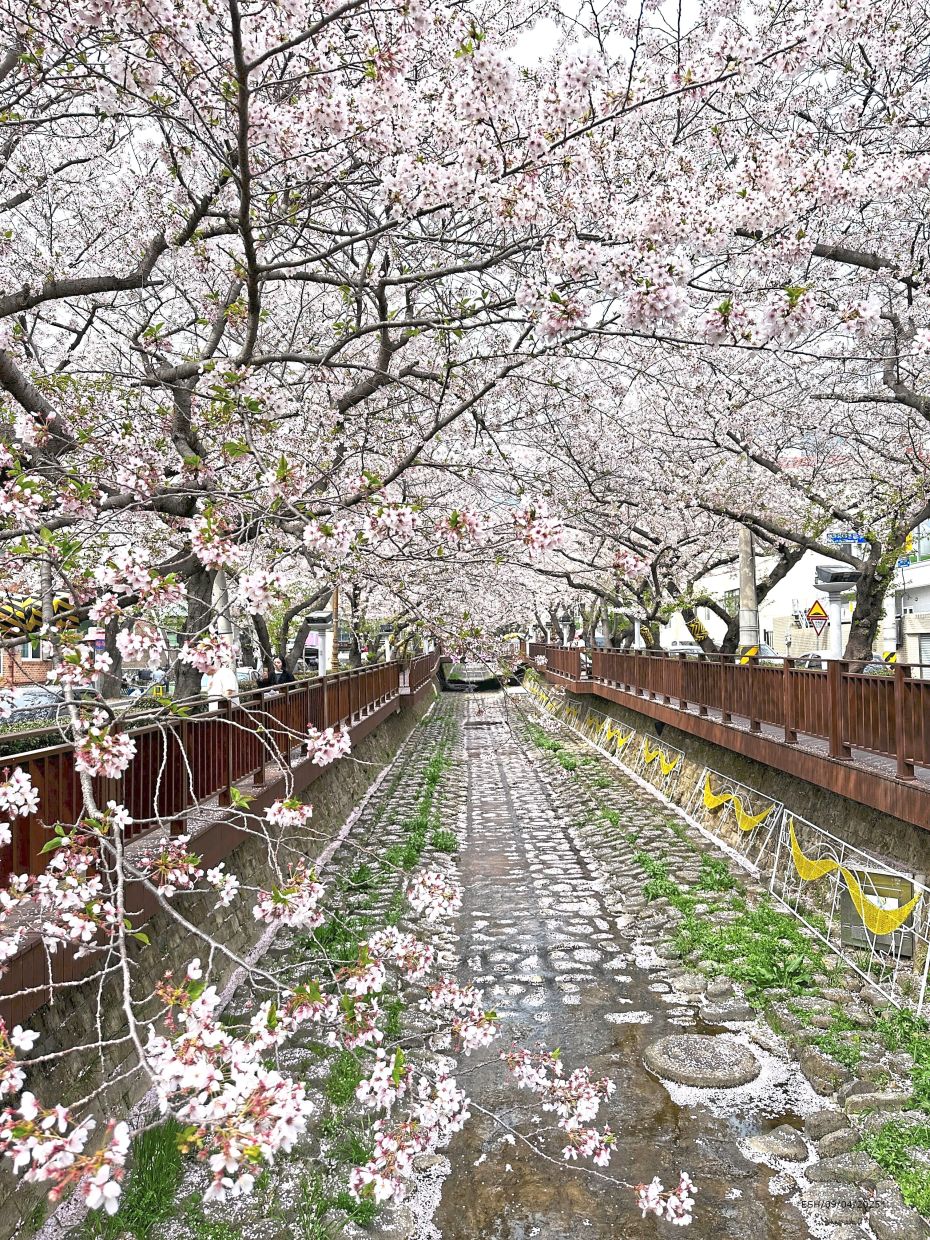 The sidewalks in Jinhae were lined with cherry trees, their branches full of flowers. Every gentle breeze sent petals fluttering, carpeting the ground in pink and white.