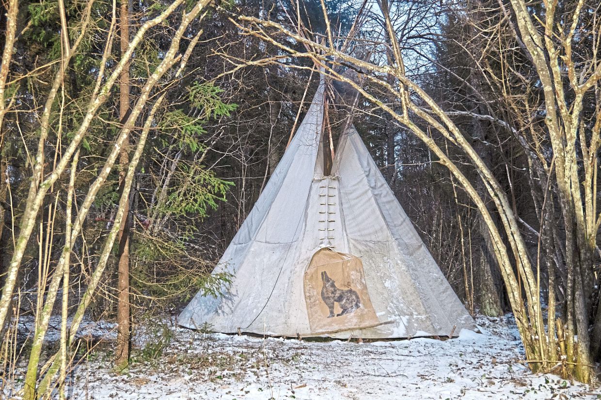 Former competitive athlete Marko Aleksejev knows how to ground his guests. He built a winter teepee in the middle of the forest and kitted it out with a fire pit.