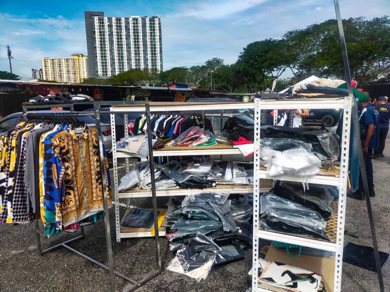 Enforcement officers from DBKL arranging the confiscated goods during an enforcement operation at Bazaria Wangsa Maju, Kuala Lumpur on May 24.