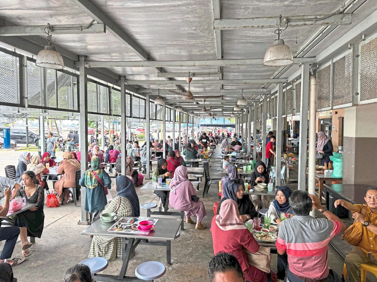 Nasi kerabu and nasi padang are popular offerings, apart from kuih akok (a sweet pastry made with flour and sugar).