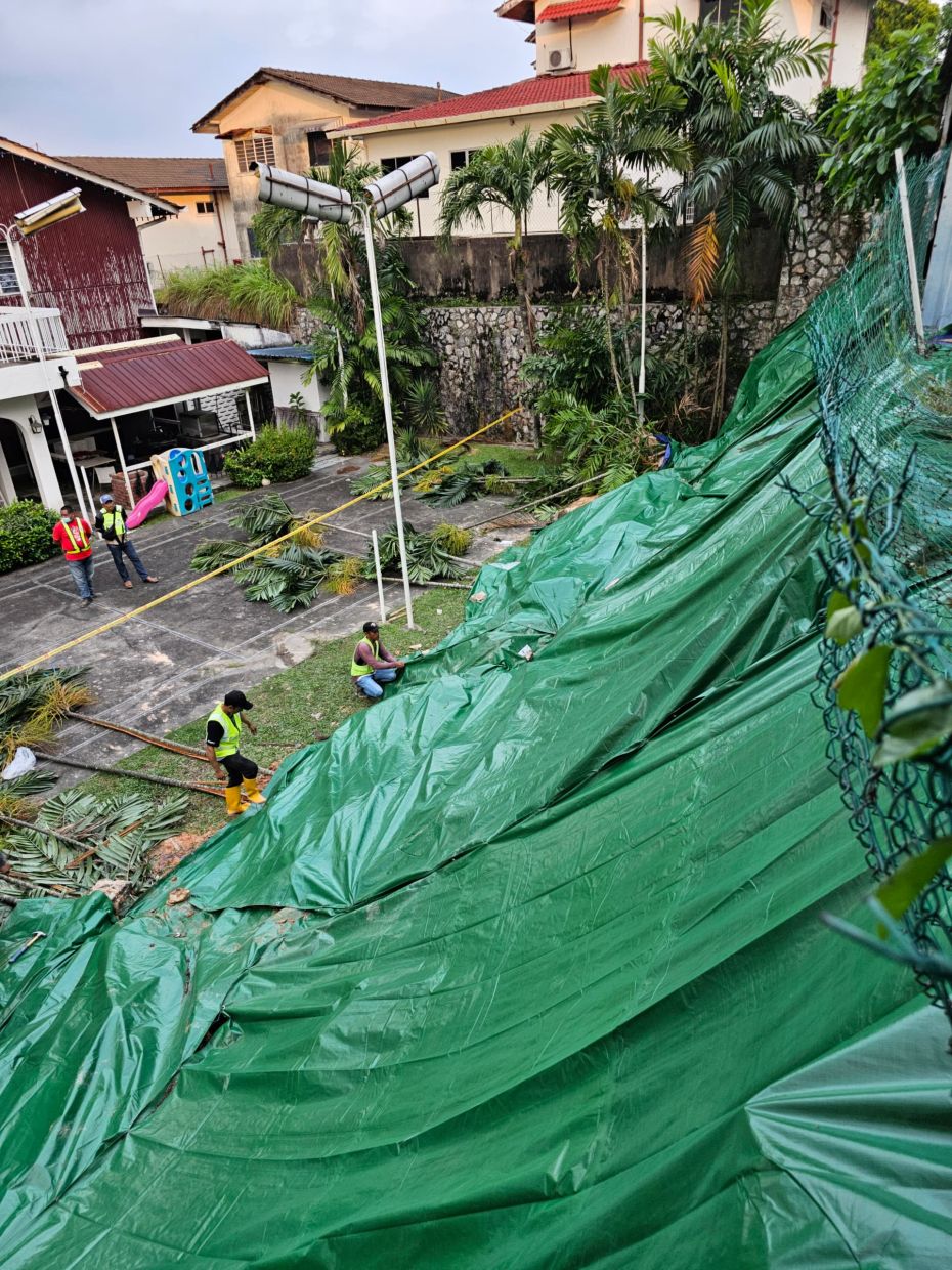 Upon exiting his brother’s house on Jalan 21/9, Zulkarnain saw that the slope wall had collapsed, leaving a mess of earth, fallen trees and debris on the badminton court in their garden.