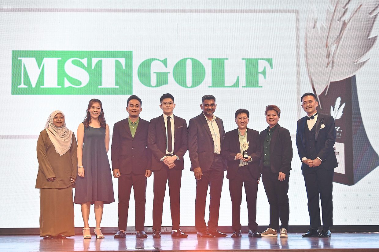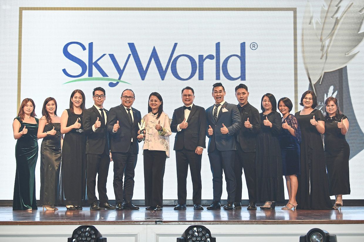 skyWorld chief executive officer Lee Chee seng (fifth from left) and his team receiving their gold award in the Property category from Wang (sixth from left) and 4as chief executive officer andrew Lee (on Wang’s left). — Photos: yaP Chee hONG, IZZraFIQ aLIas and aZMaN GhaNI/The star