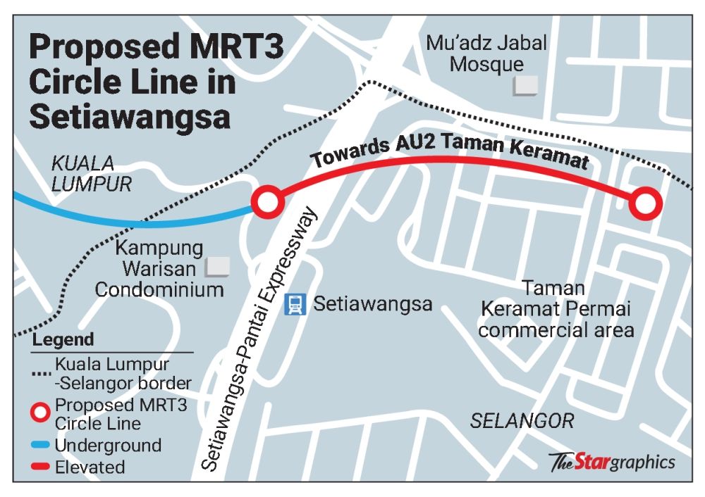 It will cross over the Kelana Jaya LRT Line and Setiawangsa-Pantai Expressway, connecting the proposed Rejang MRT Station with the Setiawangsa LRT Station, before continuing towards the AU2 Taman Keramat Station. (See graphic)