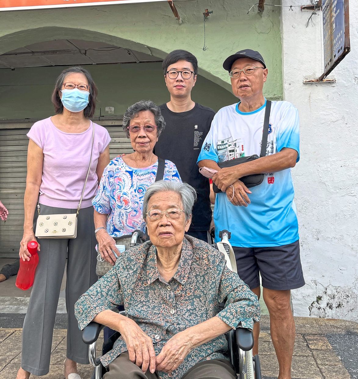 Kueh (second left), her husband Alan Sok (left) and their friends at the Chingay festival in Johor Baru.