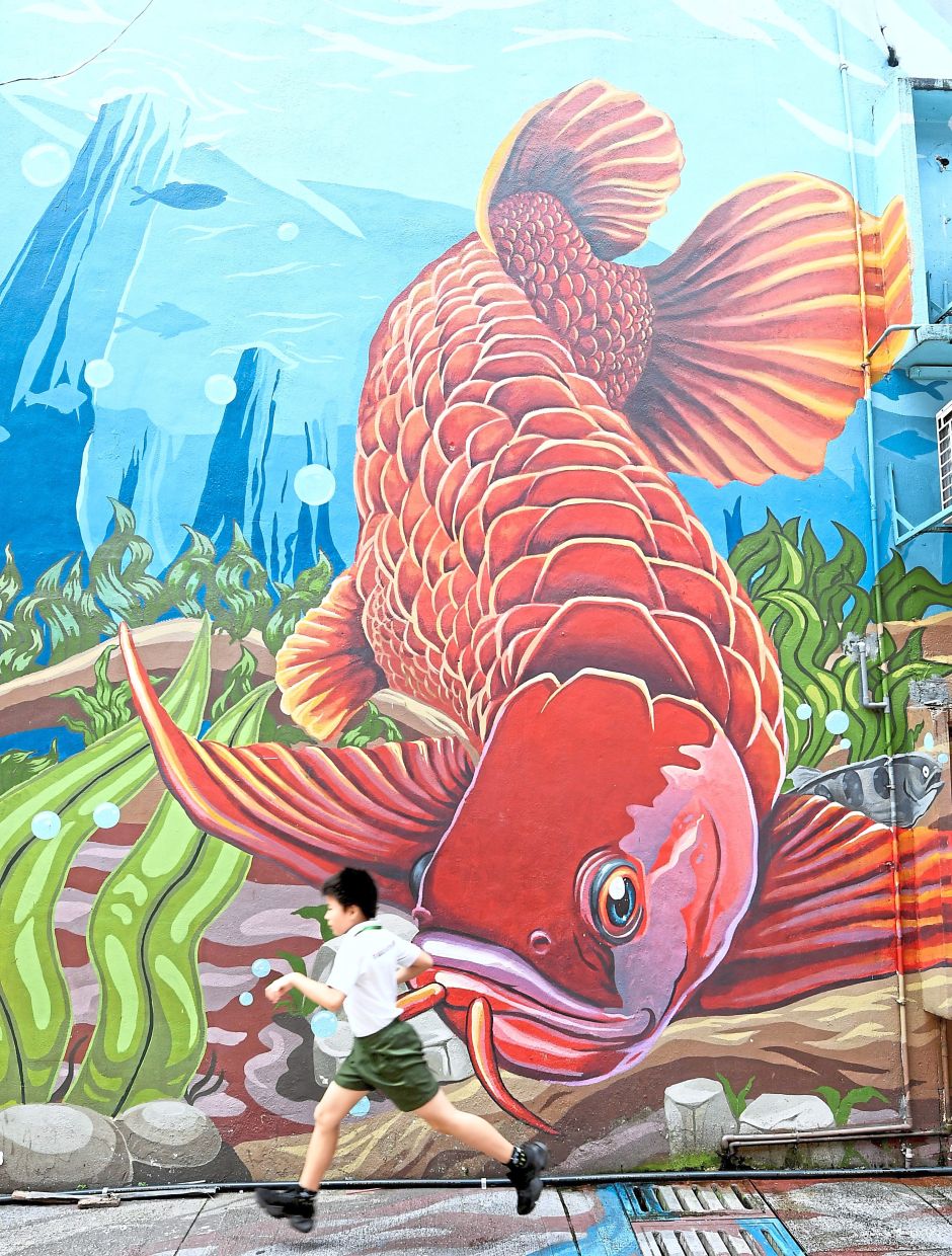 A boy mimics the mural of a gaping fish while another looks on in an amusement. — Photos: AZHAR MAHFOF/The Star