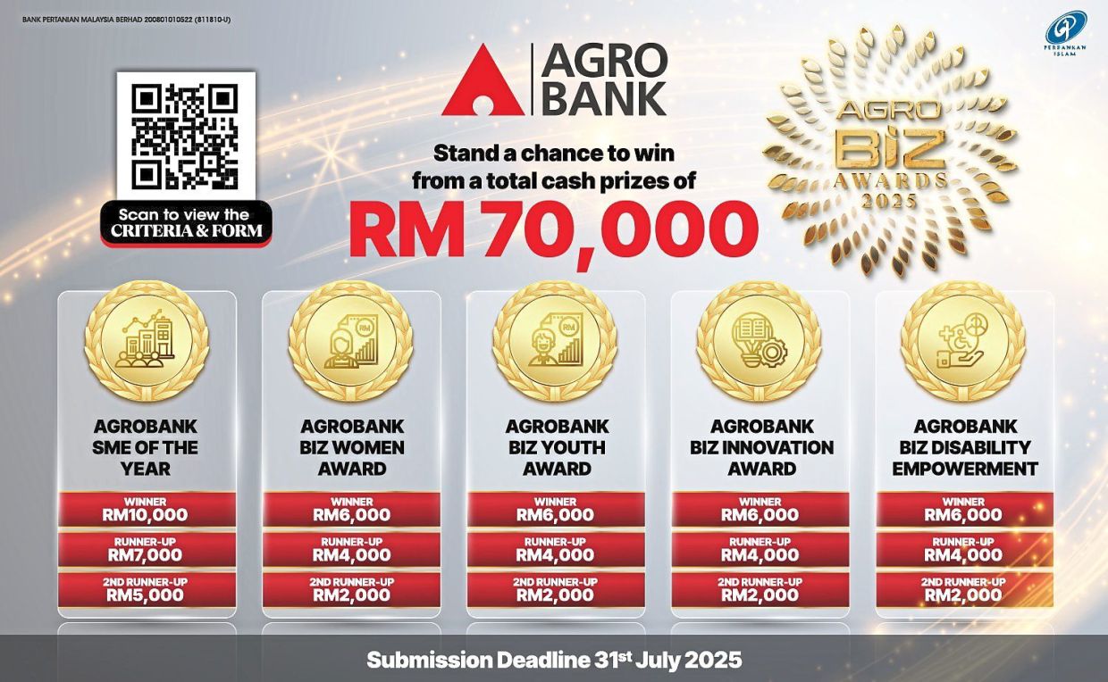 The fifth category is the Agrobank Biz Disability Empowerment Award which recognises entrepreneurs with disabilities (PWD) in appreciation for their contributions and achievements in the agricultural and agri-food sectors, the bank said.