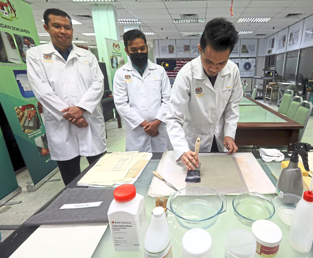 Archivists demonstrating how documents such as letters and files are repaired and restored. — Photos: AZLINA ABDULLAH/The Star
