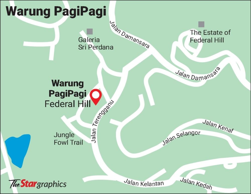 Warung PagiPagi is located at Lot 1, Galeria Sri Perdana, Jalan Terengganu, Bukit Persekutuan.