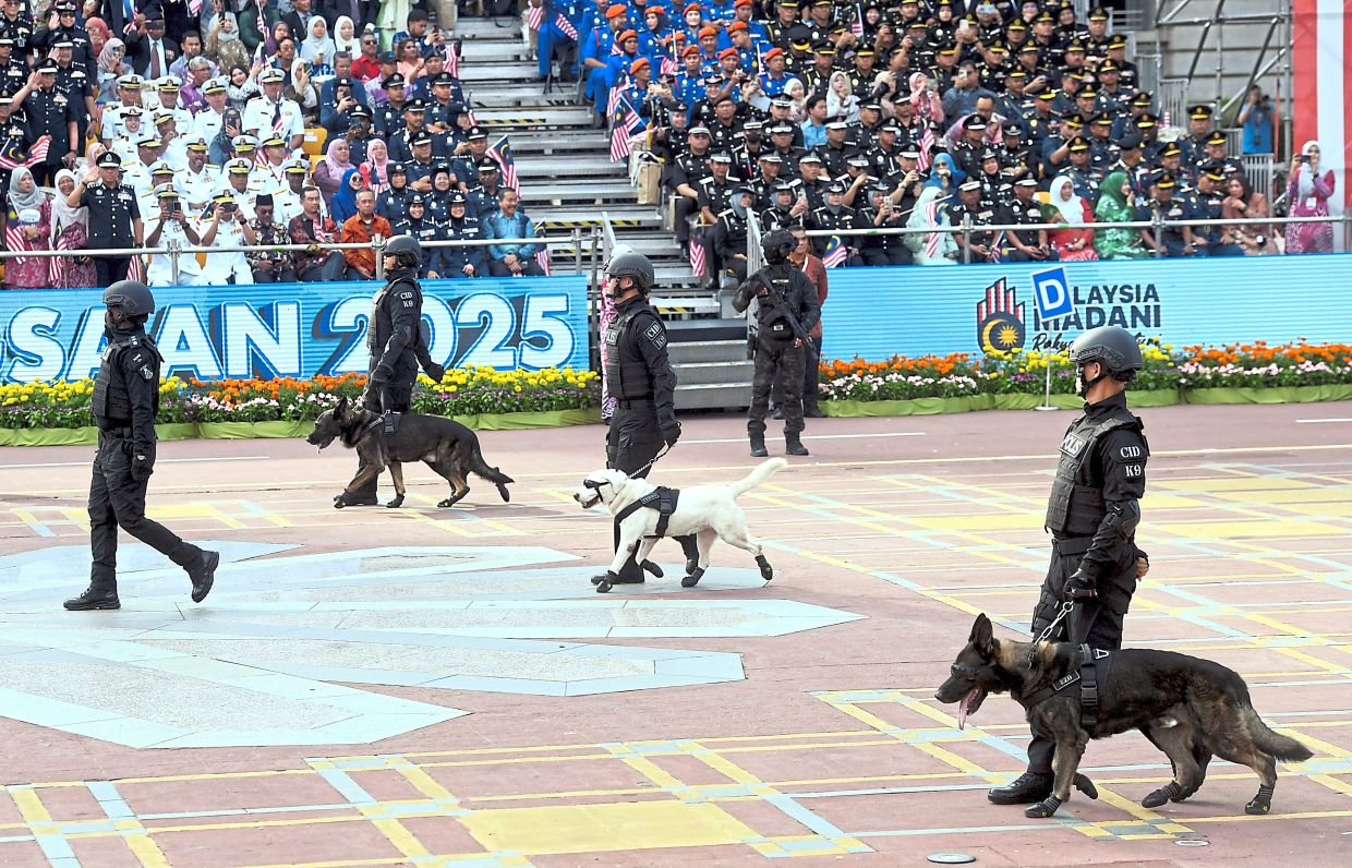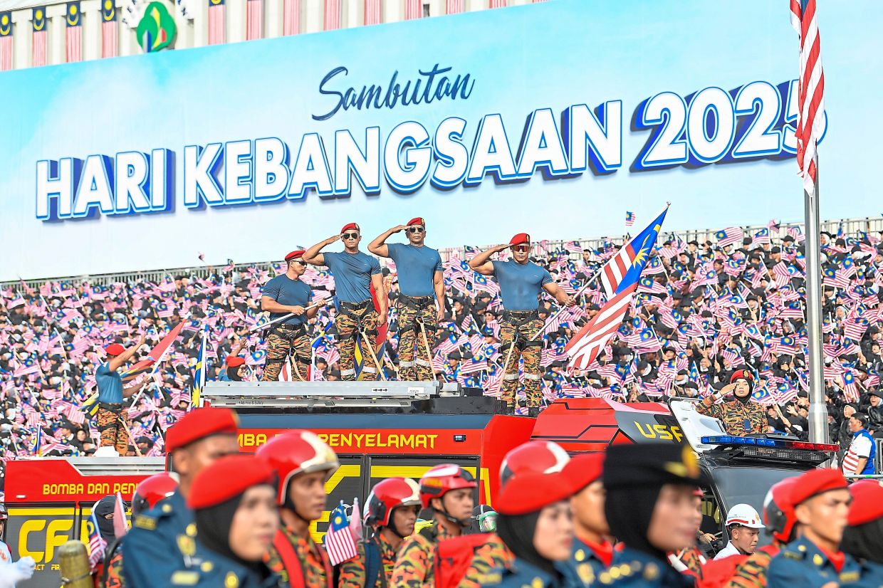 Contigents during parade inconjuction of 2025 National day celebration at Dataran Putrajaya. — FAIHAN GHANI/The Star