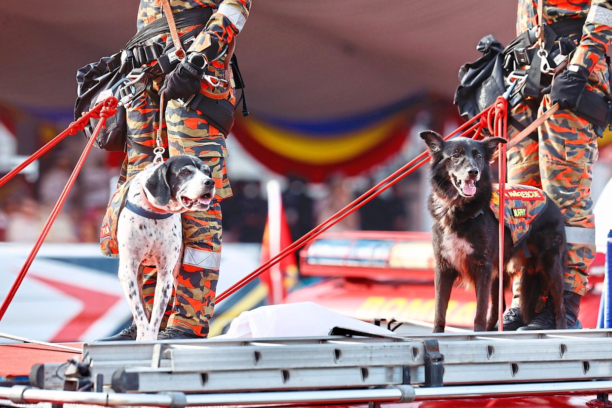 Also drawing attention were K9 units from the Fire and Rescue Department (left) and the Police (right).