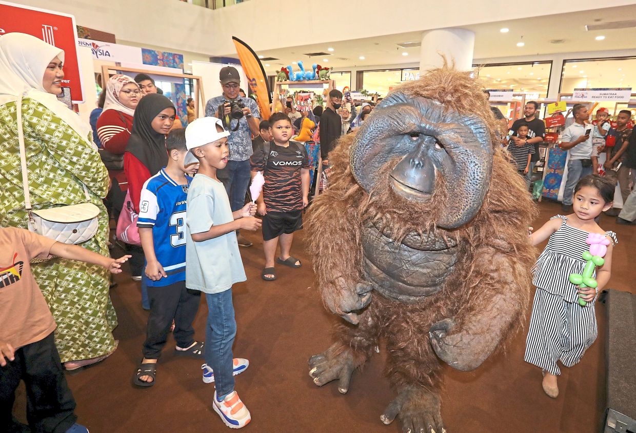 Dinosaur Encounter Zoo Teruntum, a dinosaur-themed attraction in Kuantan, had young visitors excited as they tried to engage with the dinosaur and orang utan replicas.
