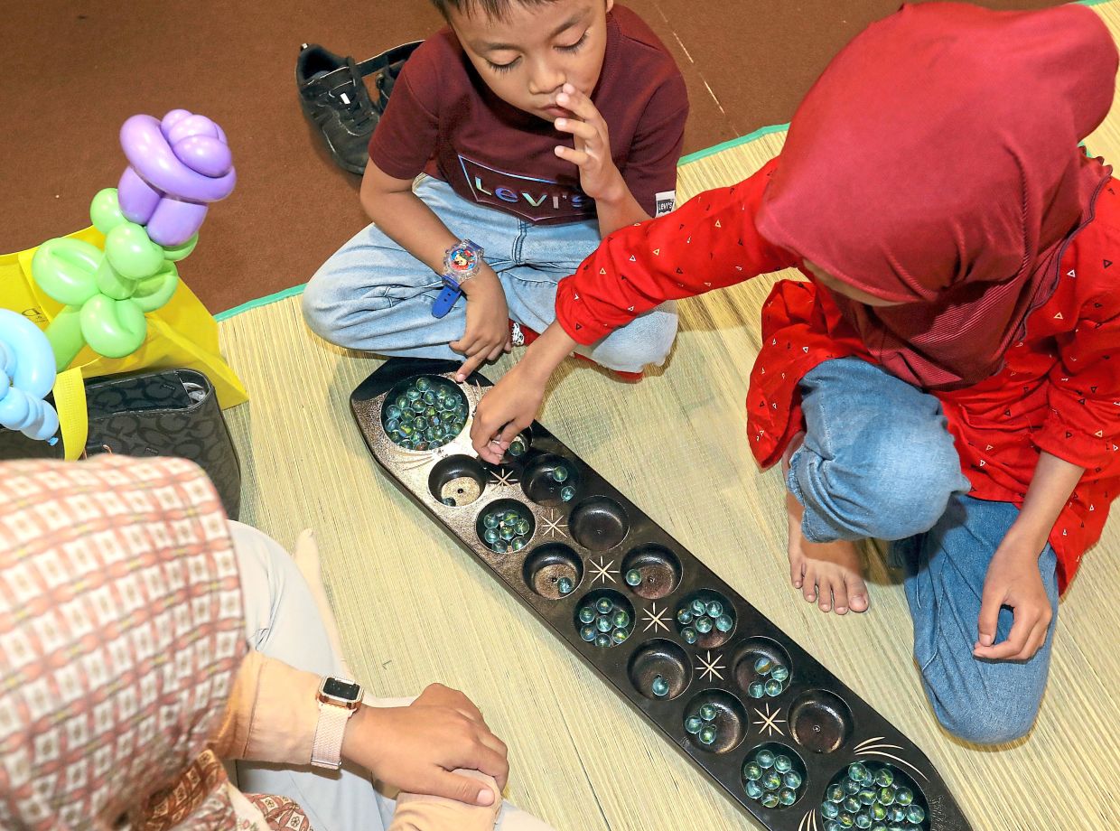 Children and adults alike were seen immersing themselves in various cultural activities and games including batik painting and congkak.