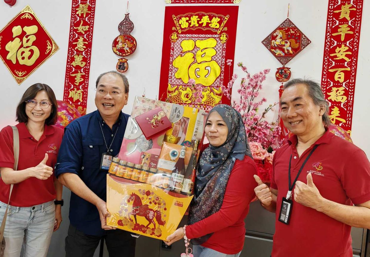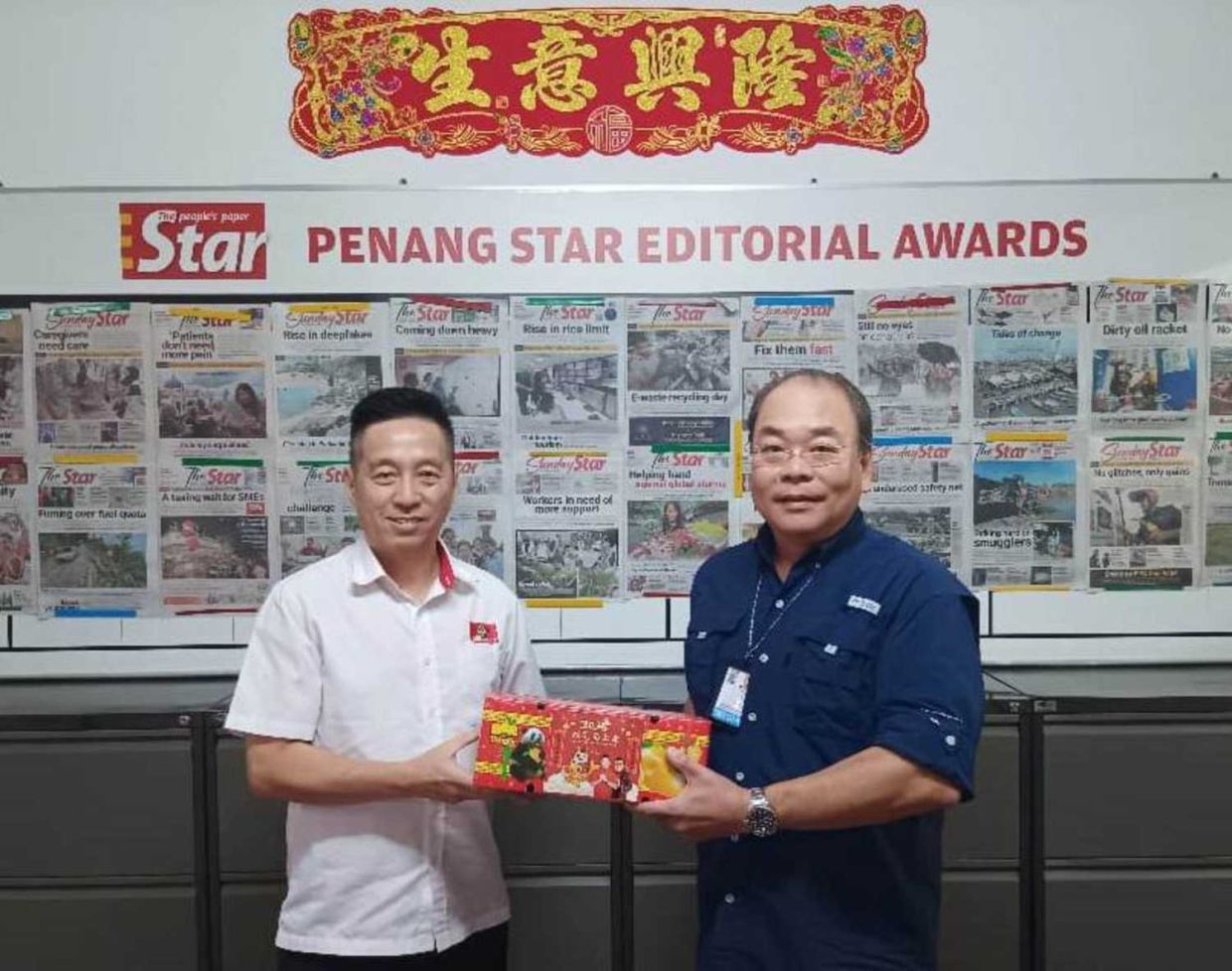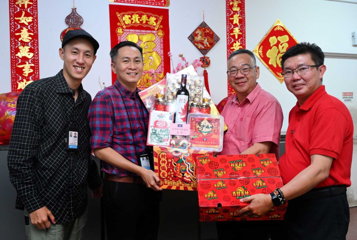 Among the visitors was Penang DAP chairman Steven Sim, who led a delegation of state party leaders to present mandarin oranges to SMG news editor Arnold Loh and deputy news editor Tan Sin Chow.